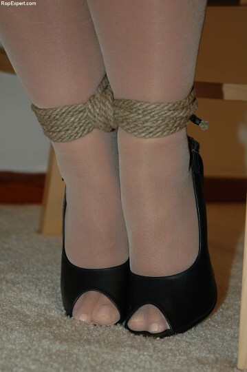42 images: Sling back, peek toe pumps ... just get it over with baby and do me. Super hot tie with hemp ropes and a white cleave gag hold one of our favorite secretaries tightly to her chair