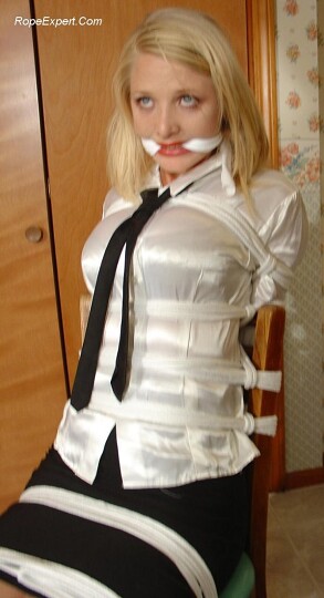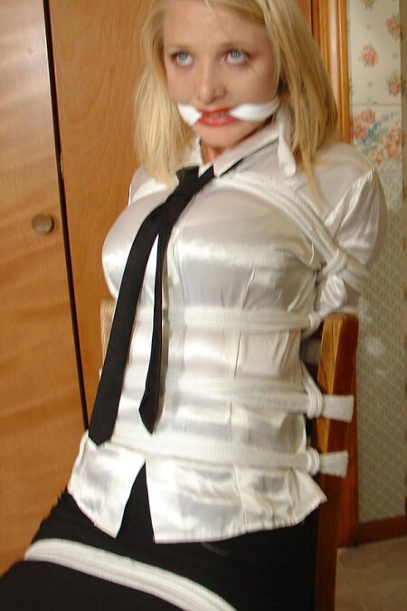 55 images: Tight chair tie, cleave gag, satin blouse, sexy strappy high heels