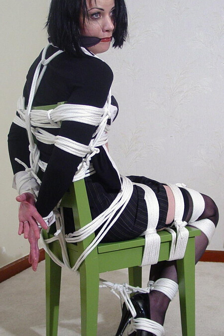 54 images: Chair tie struggle ... even her black high heel pumps are tightly secured to the straight back chair ... poor baby