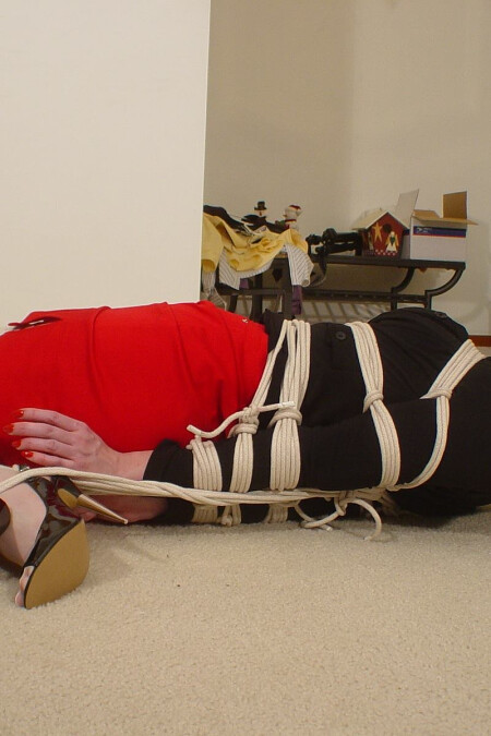65 images: What a babe ... tightly cinched ropes, mouth stuffing ball gag, peek toe sling back stiletto high heels ... whaoo